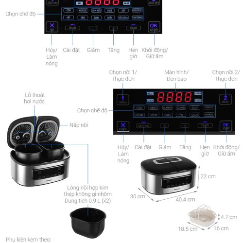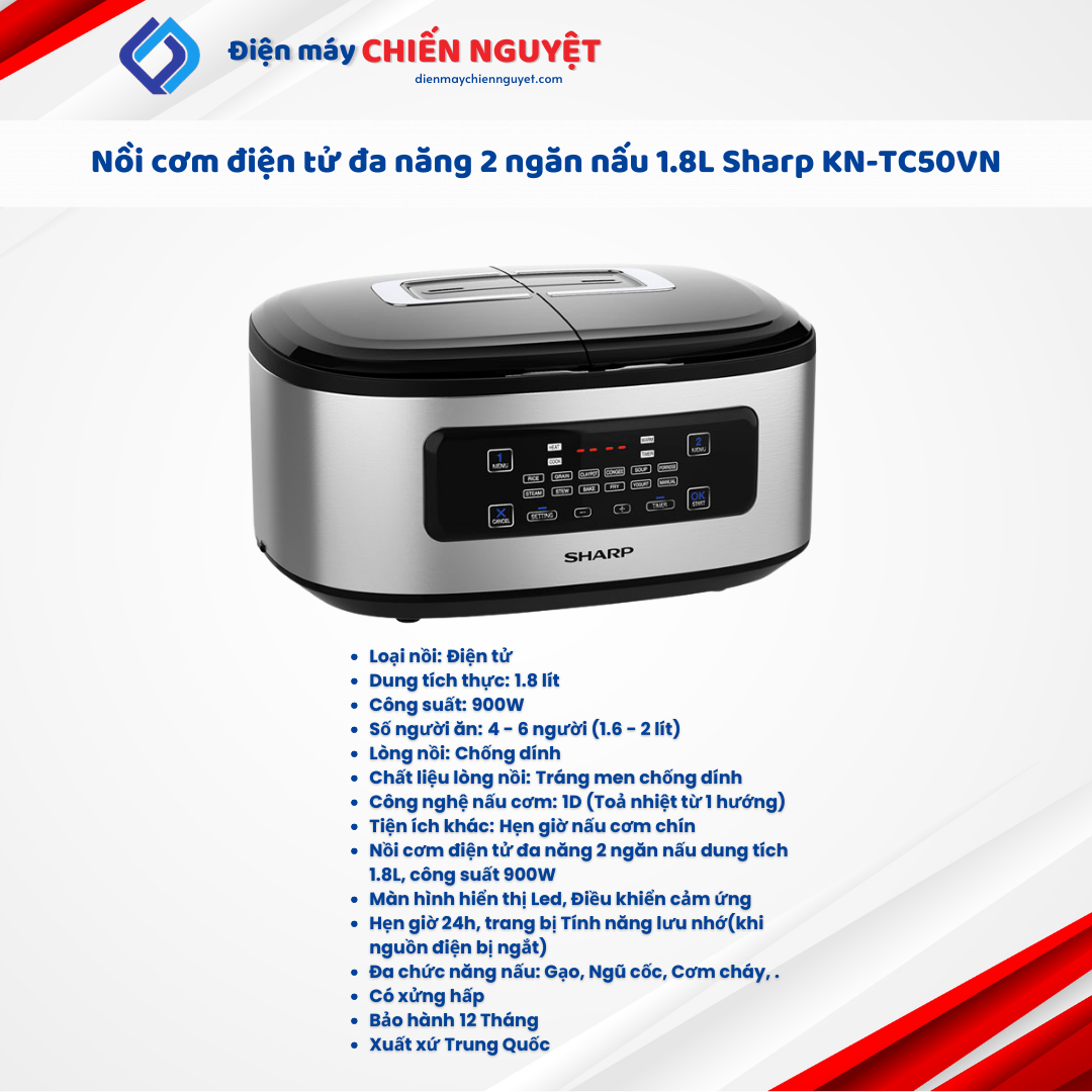 Nồi cơm điện tử 2 ngăn Sharp 1.8 lít KN-TC50VN-SL