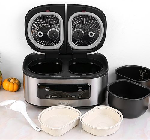 Mẫu nồi cơm điện tử có 2 ngăn tiện lợi, nổi bật với thiết kế sang trọng tạo điểm nhấn cho không gian bếp.