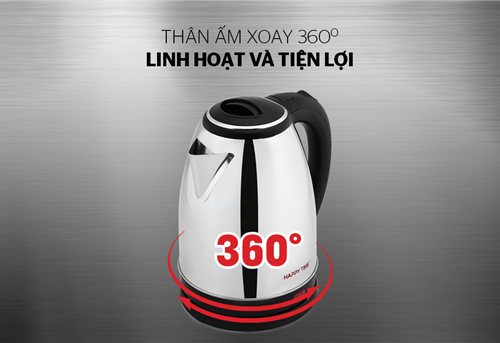 - Thân ấm xoay 360 độ linh hoạt trên đế tiếp điện