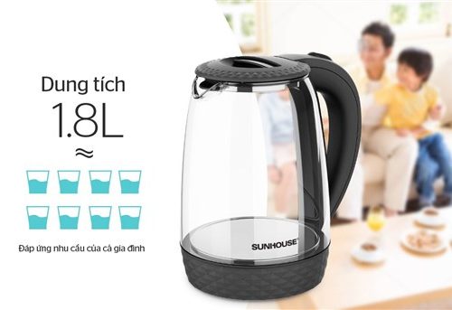 Ấm siêu tốc SUNHOUSE SHD1215B có kiểu dáng đẹp, sang trọng. Thân ấm bằng thủy tinh chịu nhiệt trong suốt, màu sắc trung tính, tính thẩm mỹ cao, không bị oxi hóa nên rất an toàn cho sức khỏe và tiện lợi khi vệ sinh.