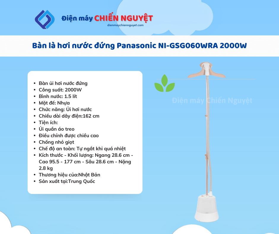 Bàn ủi hơi nước đứng Panasonic NI-GSG060WRA 2000W