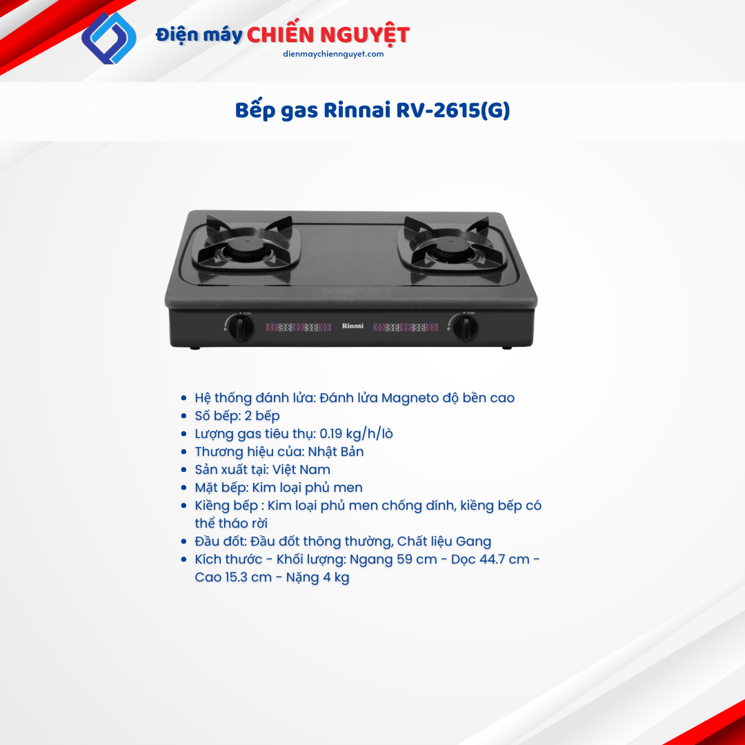 – Giới thiệu về Bếp gas dương Rinnai RV-2615(G)