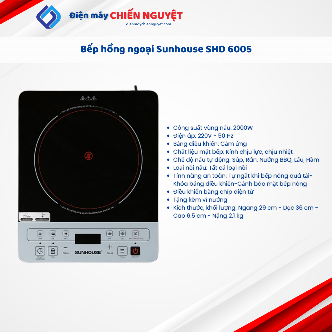 Bếp hồng ngoại Sunhouse SHD 6005 là công cụ nấu nướng đắc lực cho những ai bận rộn, có sở thích nấu nướng.
