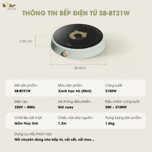 – Tạo điểm nhấn cho không gian bếp của bạn: Với thiết kế hình tròn đáng yêu và màu xanh bạc hà trang nhã, bếp từ Bear SB-BT21W là sự lựa chọn hoàn hảo cho những người yêu thích sự đẹp mắt. Chiếc bếp này chắc chắn sẽ mang đến một làn gió mới và sự sống động cho không gian bếp của bạn.