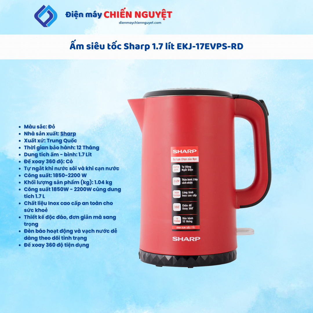 Bình đun siêu tốc Sharp 1.7 lít EKJ-17EVPS-RD