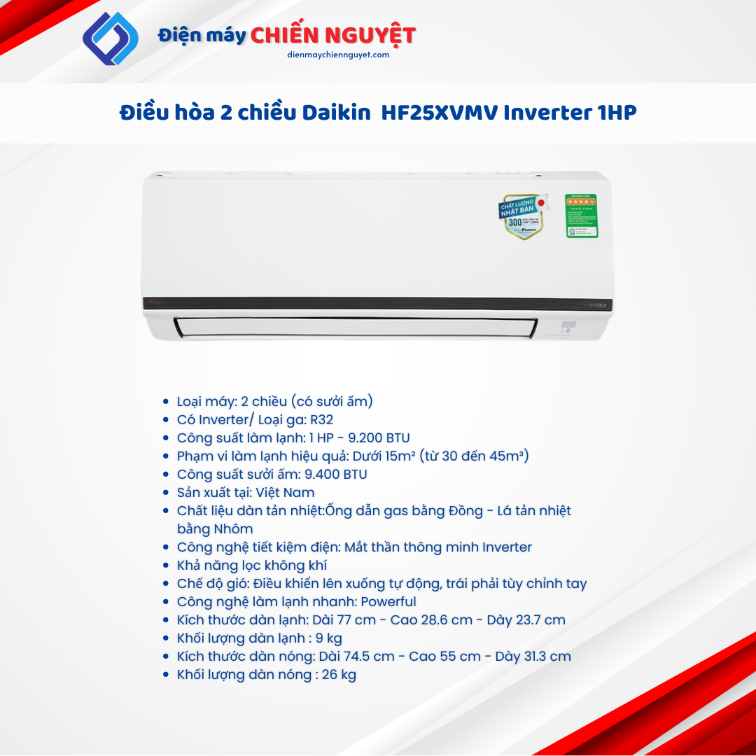 Đánh giá Điều hòa 2 chiều Daikin HF25XVMV Inverter 1 HP