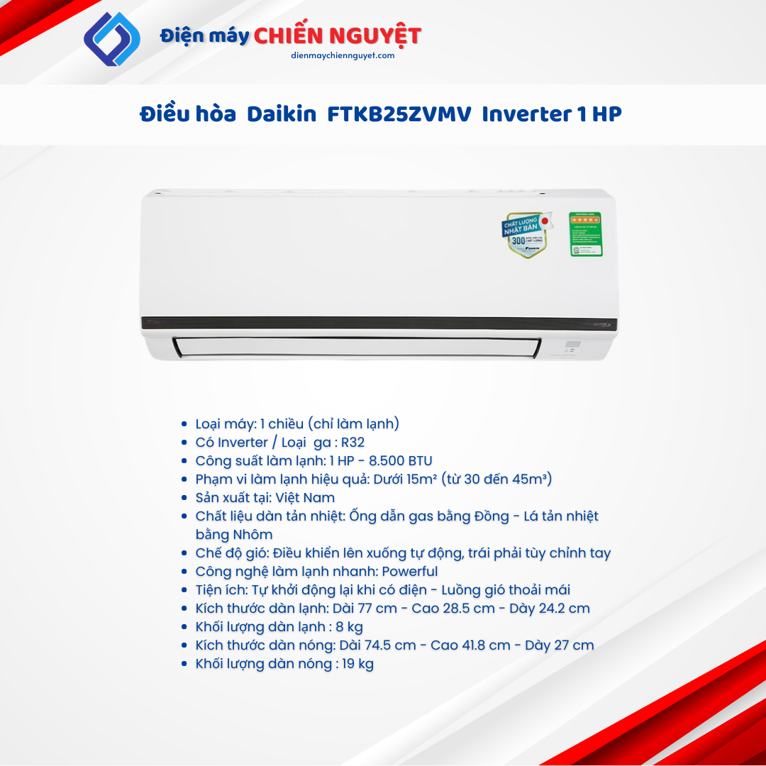 Điều hòa Daikin FTKB25ZVMV Inverter 1 HP