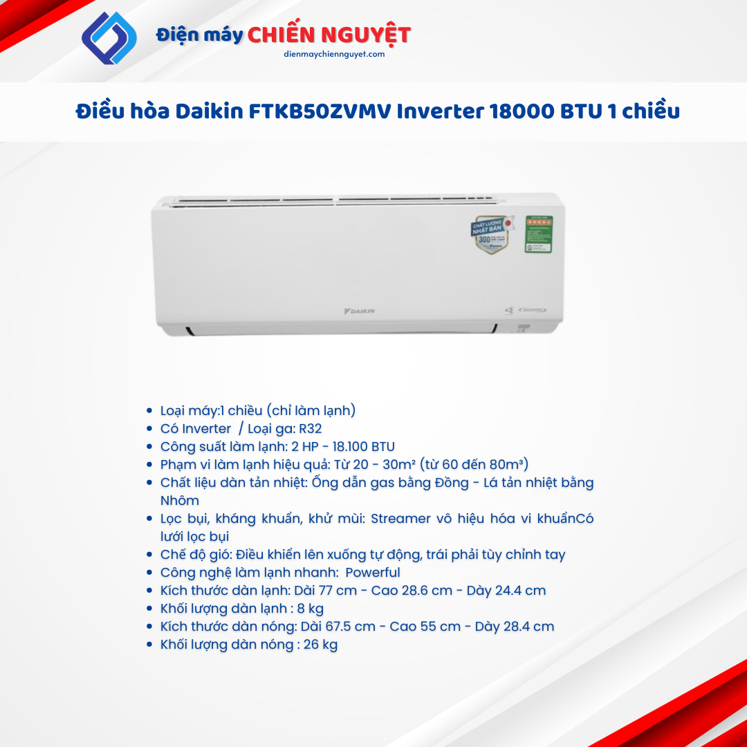 Điều hòa Daikin FTKB50ZVMV Inverter 18000 BTU 1 chiều