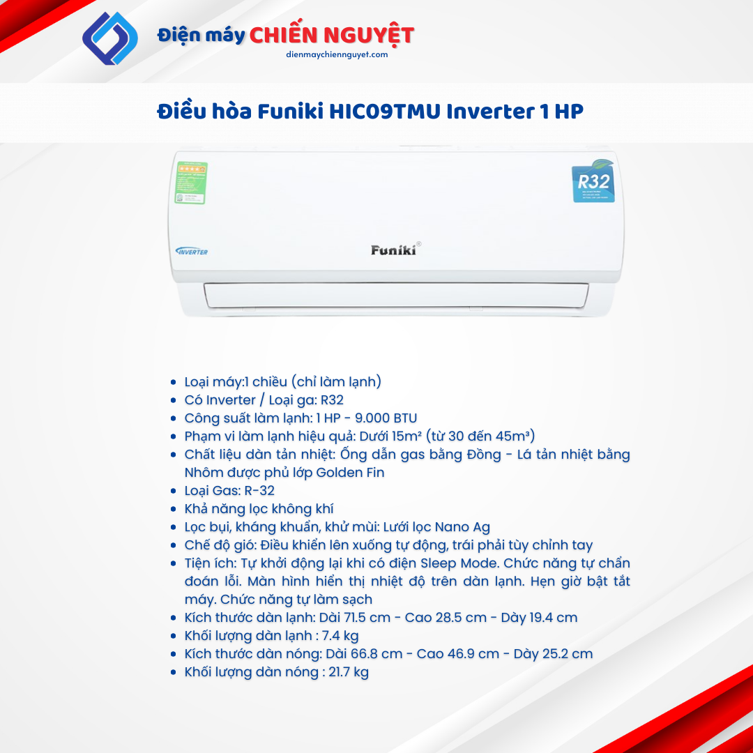 Điều hòa Funiki HIC09TMU Inverter 1 HP