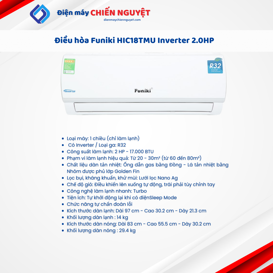 Đánh giá Điều hòa Funiki HIC18TMU Inverter 2.0 HP