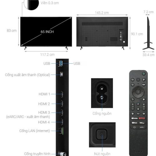 – Màn hình lớn 65 inch kết hợp cùng thiết kế viền siêu mỏng giúp làm nổi bật màn hình của tivi Sony, cho người xem hoàn toàn đắm chìm vào những khung hình đang được trình chiếu.