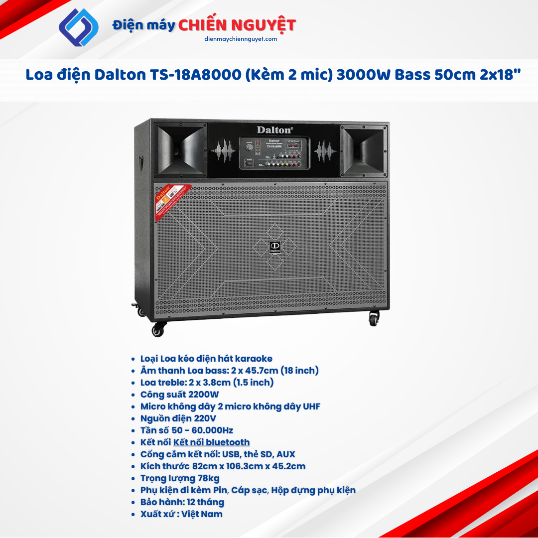 Đánh giá Loa Kéo Điện Dalton TS-18A8000