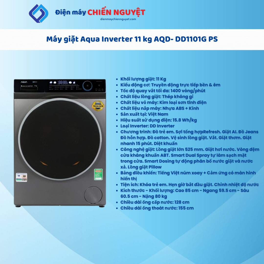 Máy giặt Aqua Inverter 11 kg AQD- DD1101G PS