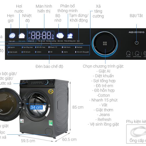 – Hẹn giờ giặt: giúp bạn chủ động thời gian giặt giũ của mình, phù hợp cho những người bận rộn.