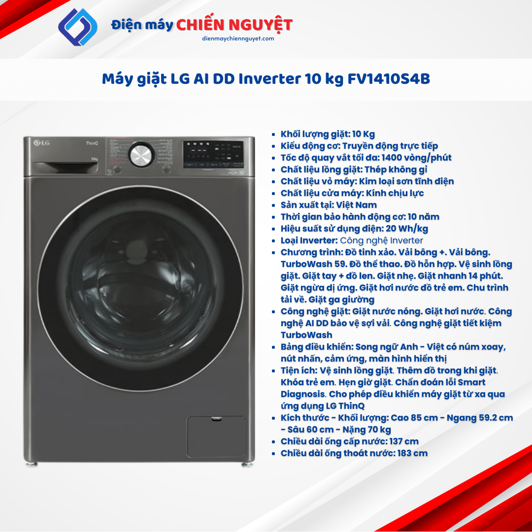 Máy giặt LG AI DD Inverter 10 kg FV1410S4B