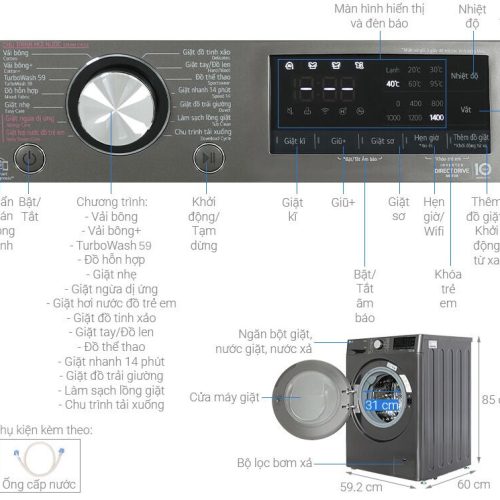 Máy giặt LG AI DD Inverter 10 kg FV1410S4B khối lượng giặt 10 kg phù hợp cho gia đình 5 – 7 thành viên hoặc khoảng 15 – 16 bộ quần áo/lần giặt, đa dạng lựa chọn chương trình phù hợp với 14 chương trình hoạt động.