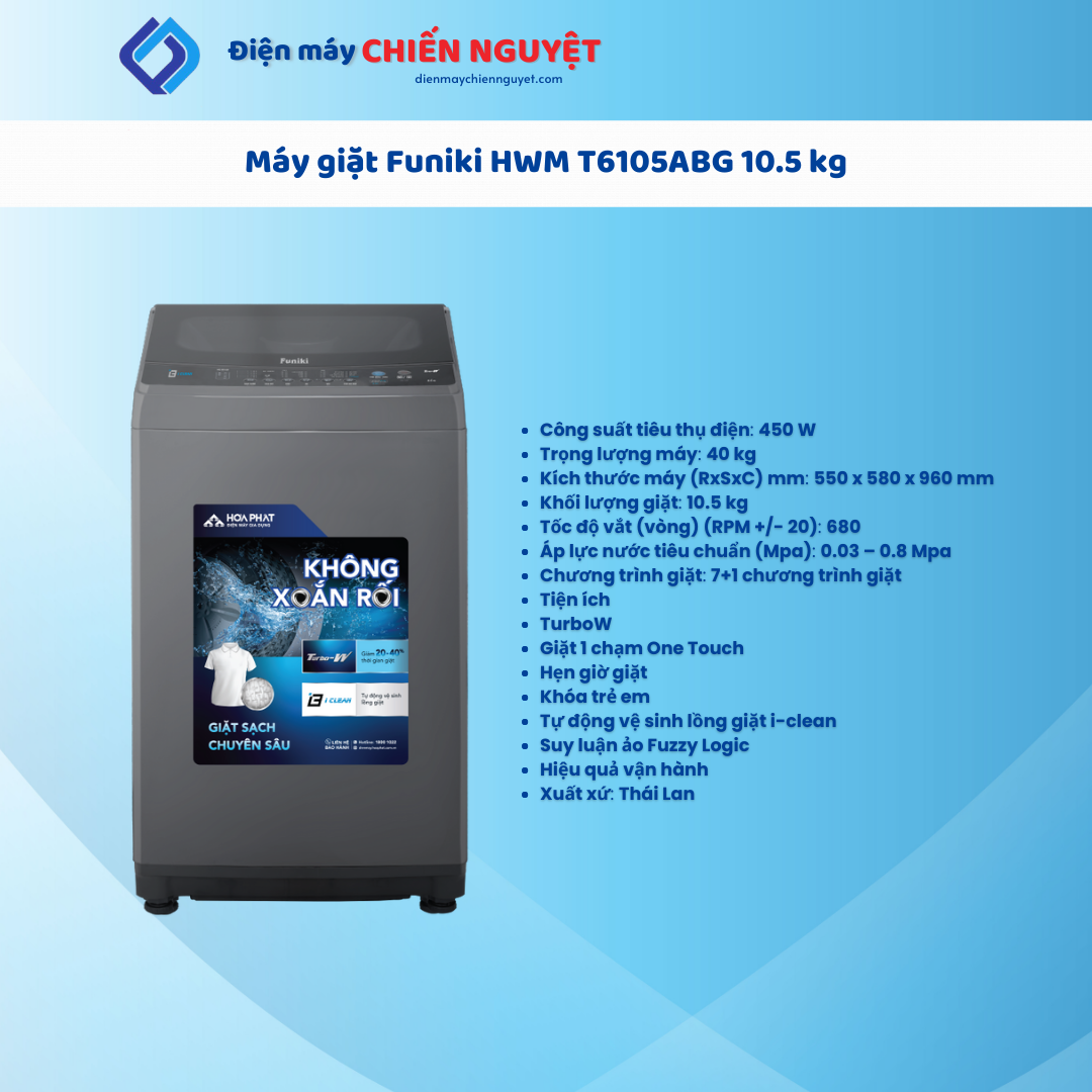 Máy giặt lồng đứng Funiki HWM T6105ABG 10.5kg