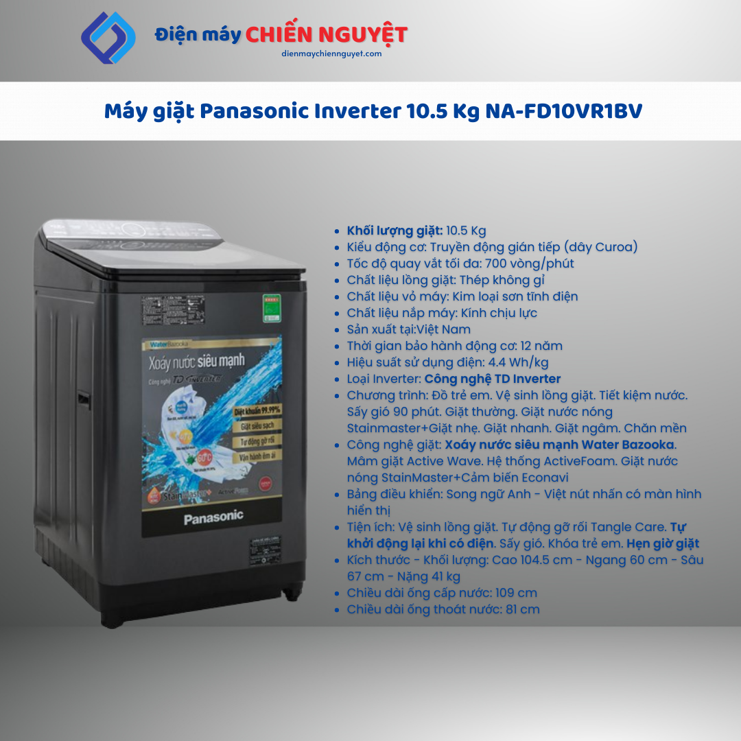 Máy giặt Panasonic Inverter 10.5 Kg NA-FD10VR1BV