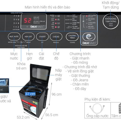 – Hẹn giờ giặt: Tiện lợi cho việc sắp xếp thời gian giặt giũ của người dùng, phù hợp cho những người bận rộn.
