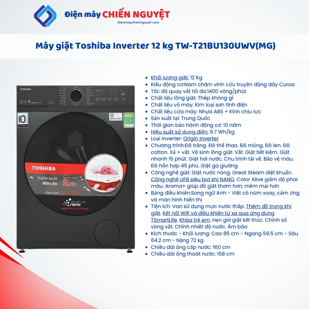 Đánh giá Máy giặt Toshiba Inverter 12 kg TW-T21BU130UWV(MG)