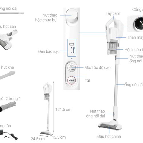 – Đèn LED chiếu sáng, dễ quan sát khi hút bụi dưới gầm giường, gầm ghế,…
