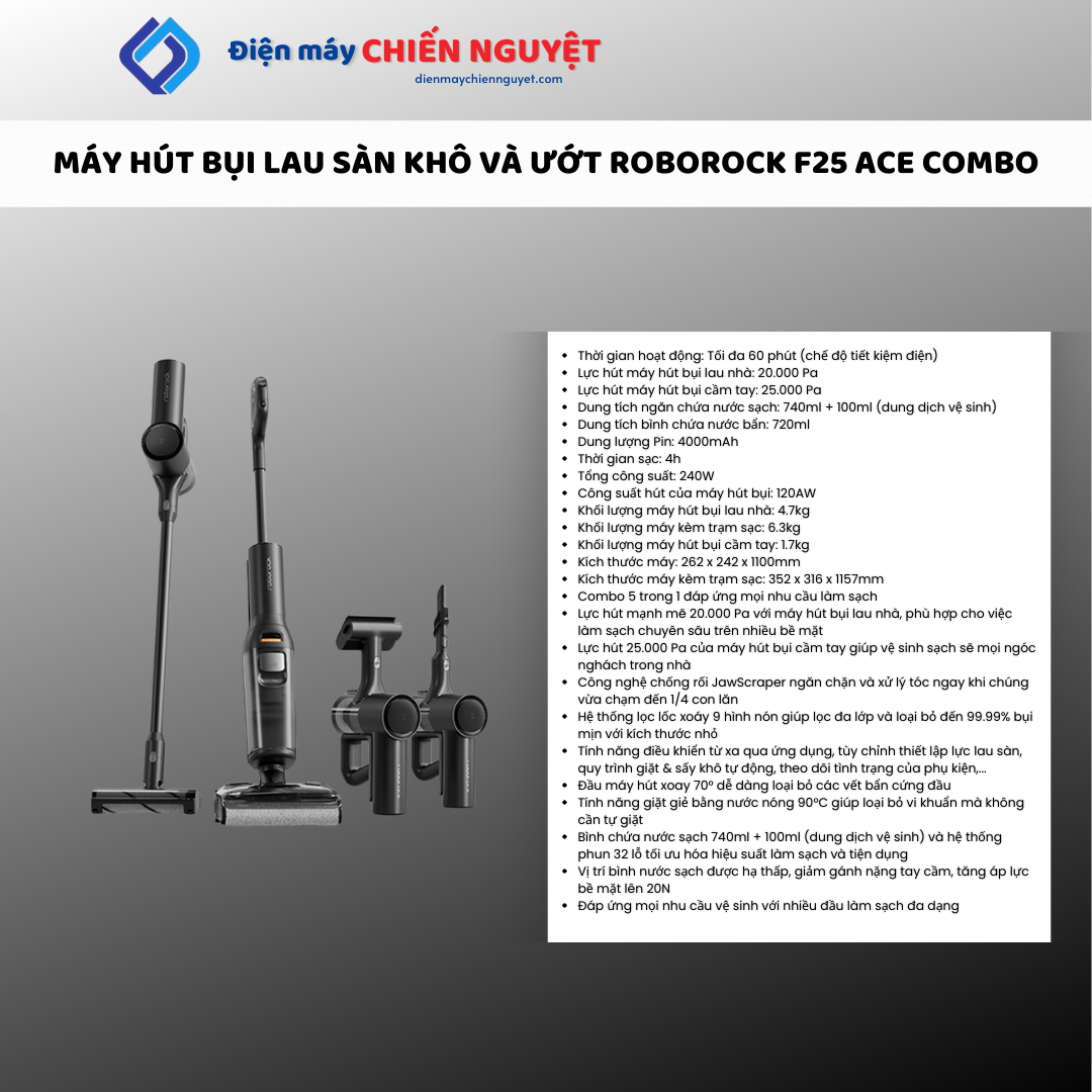 Máy hút bụi lau nhà cầm tay Roborock F25 ACE Combo