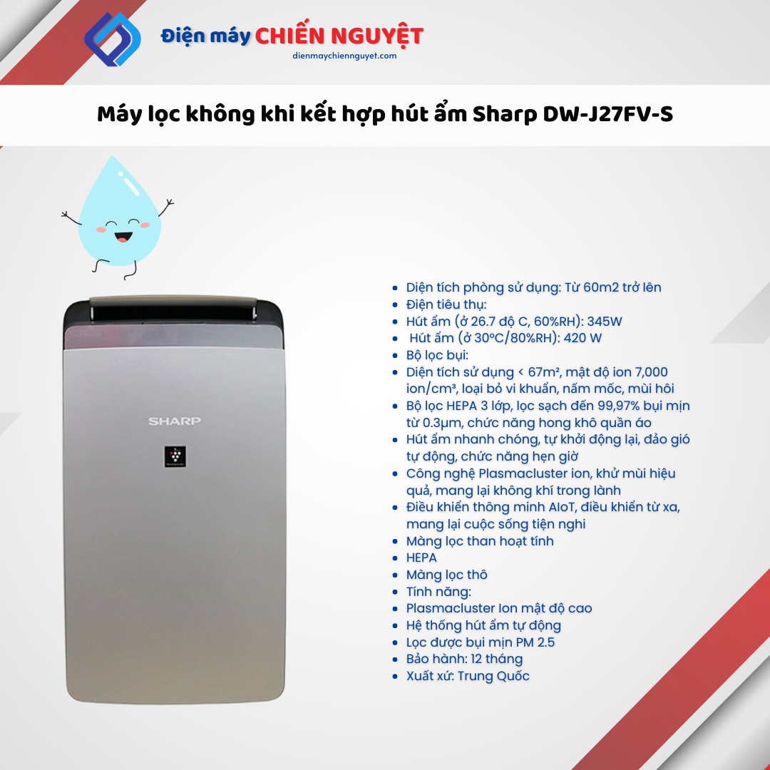 Mua ngay máy tạo ion – lọc không khí và hút ẩm Sharp DW-J27FV-S chính hãng tại CellphoneS