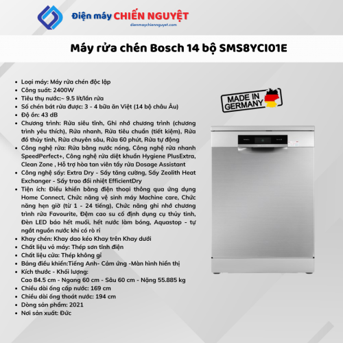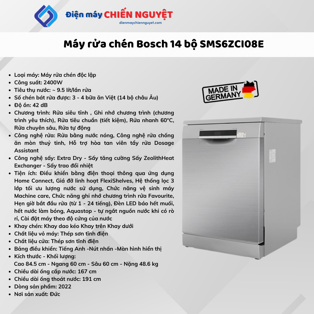 Công suất Máy rửa chén độc lập Bosch SMS6ZCI08E