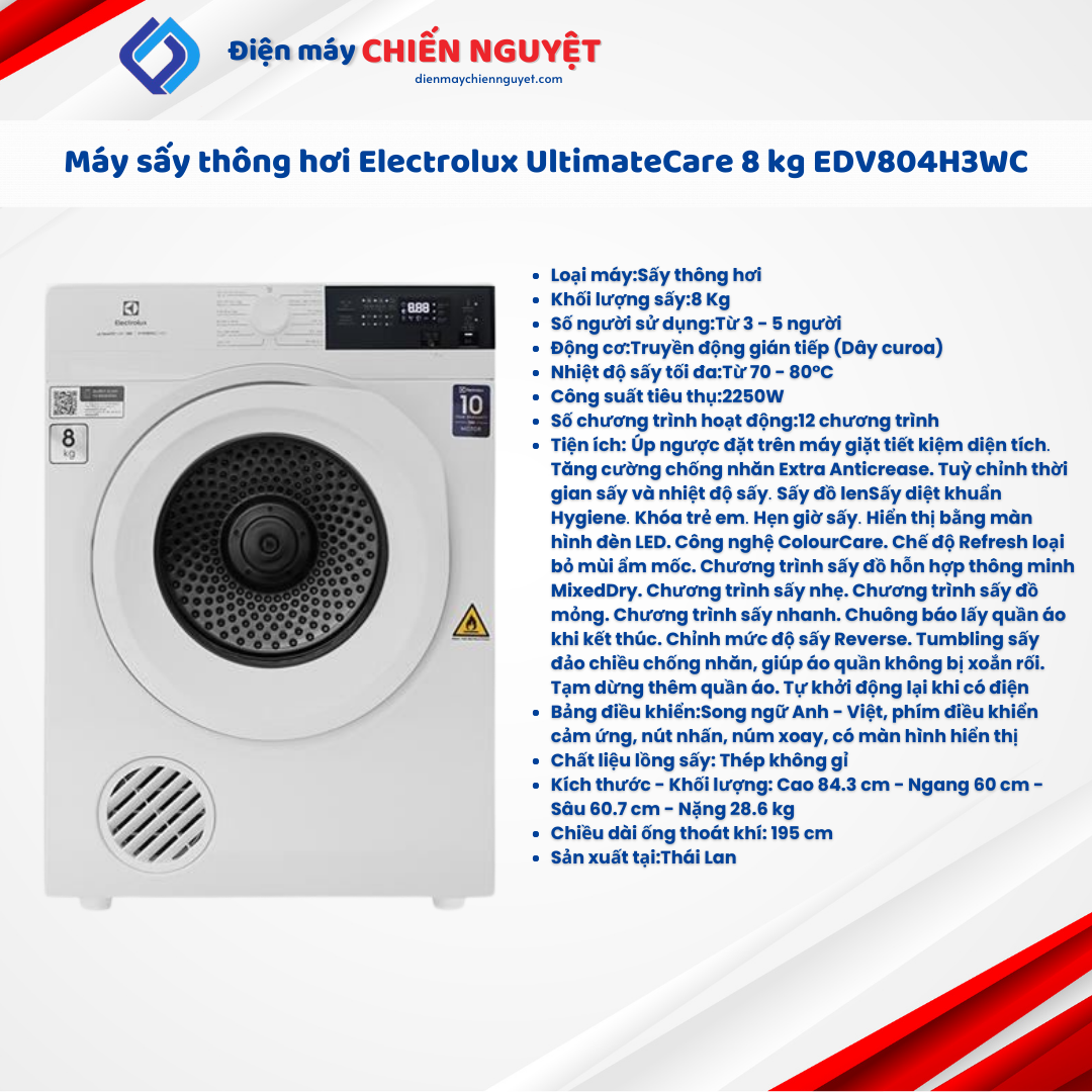 Đánh giá Máy sấy thông hơi Electrolux UltimateCare 8 kg EDV804H3WC