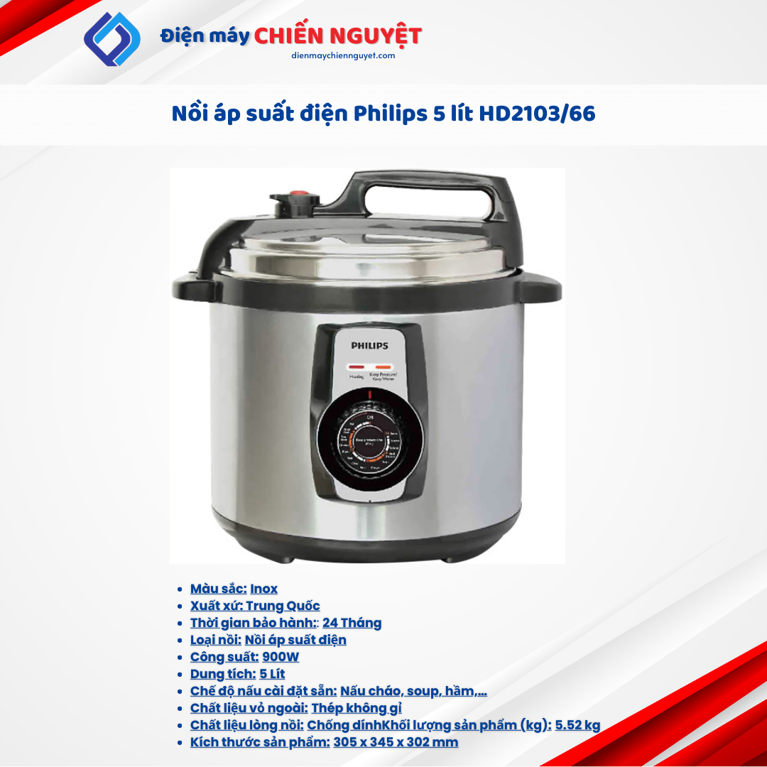 Nồi áp suất điện tử Philips HD2103/66 sản phẩm chất lượng tốt từ thương hiệu uy tín, dễ sử dụng, đáng chọn dùng cho bếp gia đình.