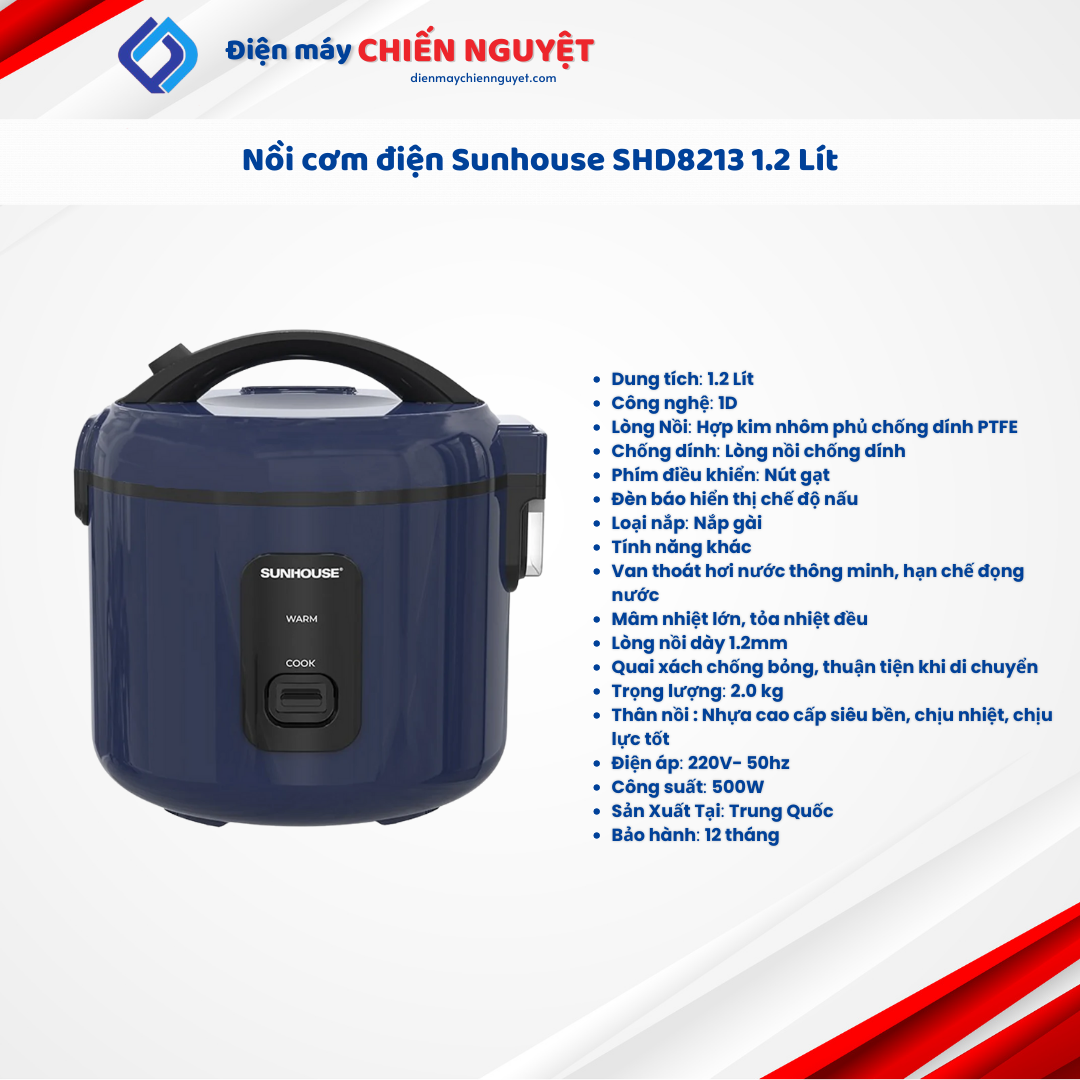 NỒI CƠM ĐIỆN 1.2L SUNHOUSE SHD8213