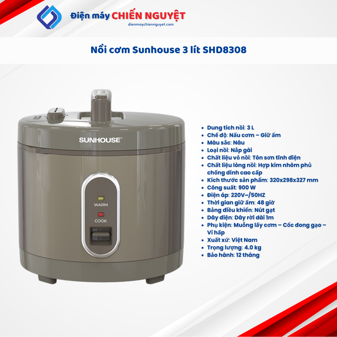 NỒI CƠM ĐIỆN 3L SUNHOUSE SHD8308