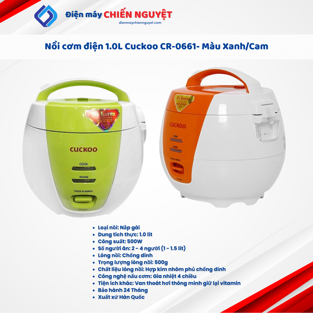 Nồi cơm điện Cuckoo 1 lít CR-0661-Màu Xanh/Cam