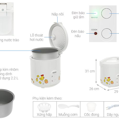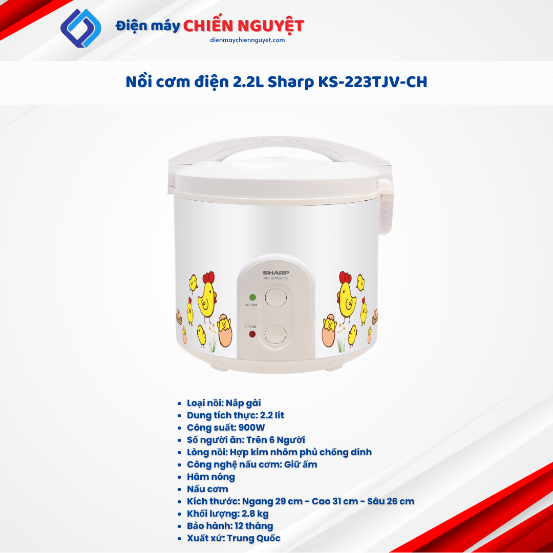 Nồi cơm điện Sharp KS-223TJV-CH 2.2 lít đẹp, dễ dùng, thương hiệu tốt, nấu cơm nhanh, lựa chọn tốt cho gia đình đông người.