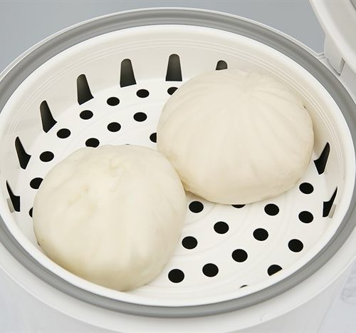 Đi kèm nồi cơm điện còn có thêm xửng hấp nhựa, muỗng lấy cơm và cốc đong gạo.