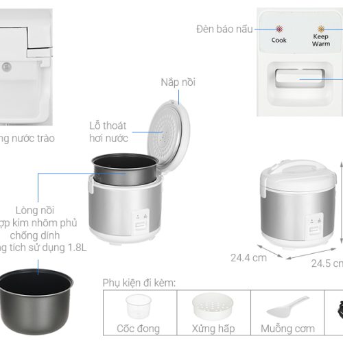 Nồi cơm nắp gài dung tích 1.8 lít phục vụ tốt cho các gia đình có 4 – 6 thành viên