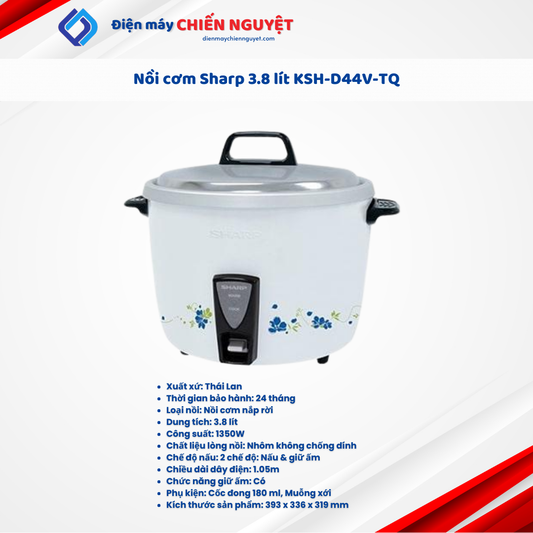 Nồi cơm Sharp 3.8 lít KSH-D44V-TQ