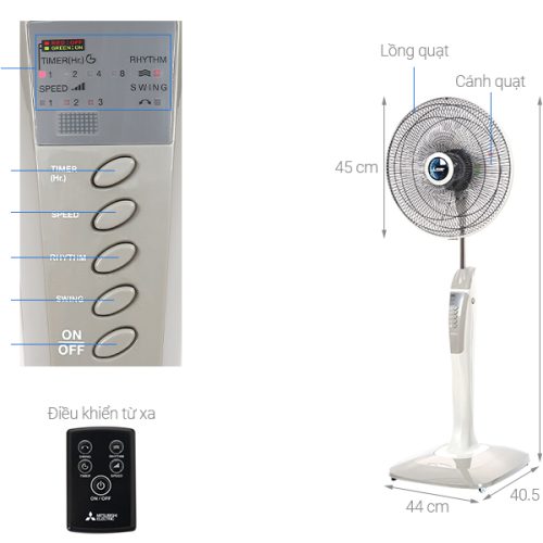 Quạt Mitsubishi thuộc dòng quạt điện cơ có kiểu dáng đơn giản, chân đế lớn giúp quạt đứng vững vàng trên mọi mặt phẳng