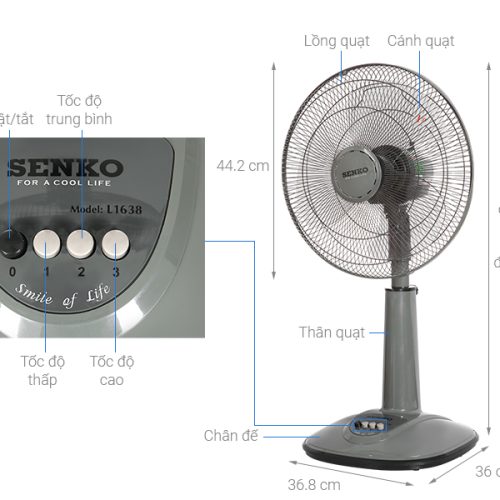 – Quạt Senko L1638 sở hữu duy nhất một chế độ gió thường với 3 mức gió thấp – vừa – cao cho bạn tùy chỉnh theo nhu cầu sử dụng.