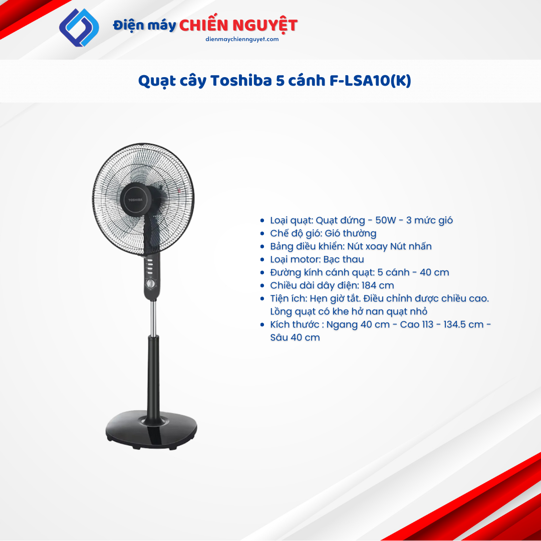 Toshiba F-LSA10(K) trang bị 5 cánh quạt đường kính 40cm