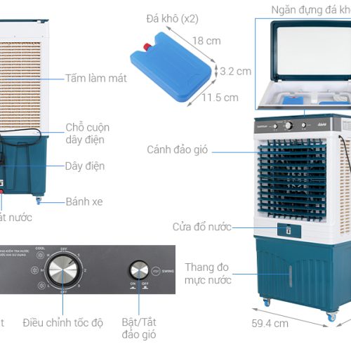 Quạt điều hoà Daikiosan DM103 dễ dàng di chuyển với bánh xe, làm mát hiệu quả cho không gian phòng từ 45 – 55m2, dễ dàng điều chỉnh tốc độ gió bằng núm xoay, trang bị công nghệ diệt khuẩn Ag+ cho không khí tươi mát, tốt cho sức khỏe,…