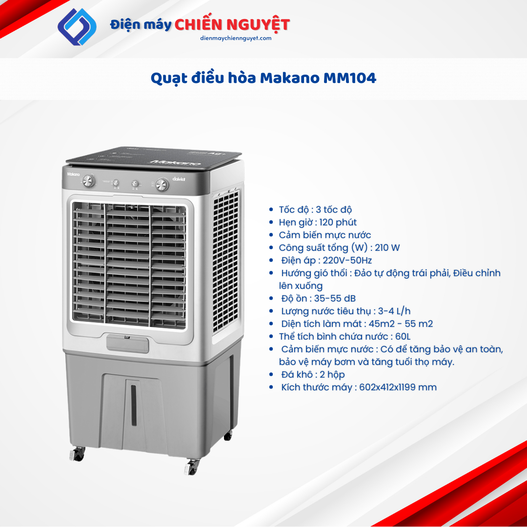 Quạt điều hòa Makano MM104 ứng dụng công nghệ độc nhất không chỉ mang đến sự mát mẻ, sạch khỏe, hiệu quả mà còn có nhiều tính năng giúp bạn trải nghiệm một môi trường thoải mái và tiện nghi.