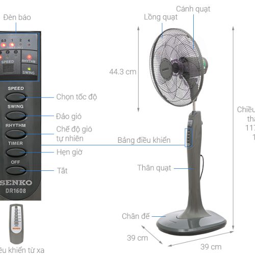 Quạt đứng Senko DR1608 có thiết kế chắc chắn, công suất quạt lớn đến 65W tạo ra luồng gió mạnh và trải rộng nhờ trang bị 7 cánh quạt đường kính 39 cm, quạt có 3 mức gió cho người dùng dễ điều chỉnh tuỳ vào nhu cầu, motor quạt bằng bạc thau bền bỉ,…