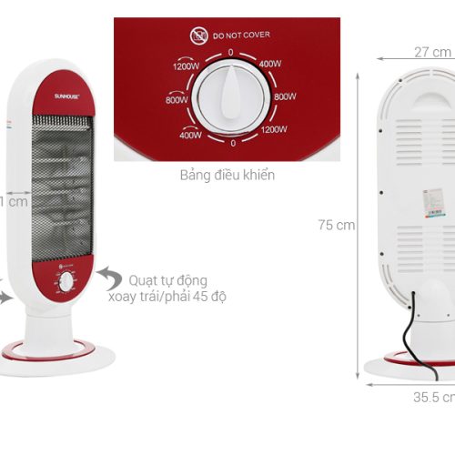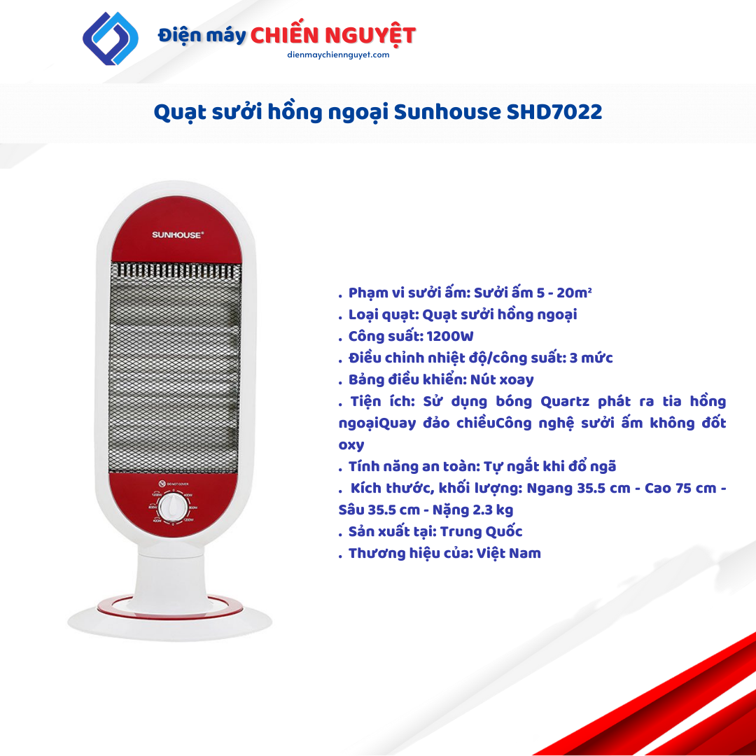 Quạt sưởi hồng ngoại Sunhouse SHD7022 gọn đẹp, sử dụng đơn giản, sưởi ấm tốt và an toàn, gia dụng hữu ích cho gia đình mùa lạnh.