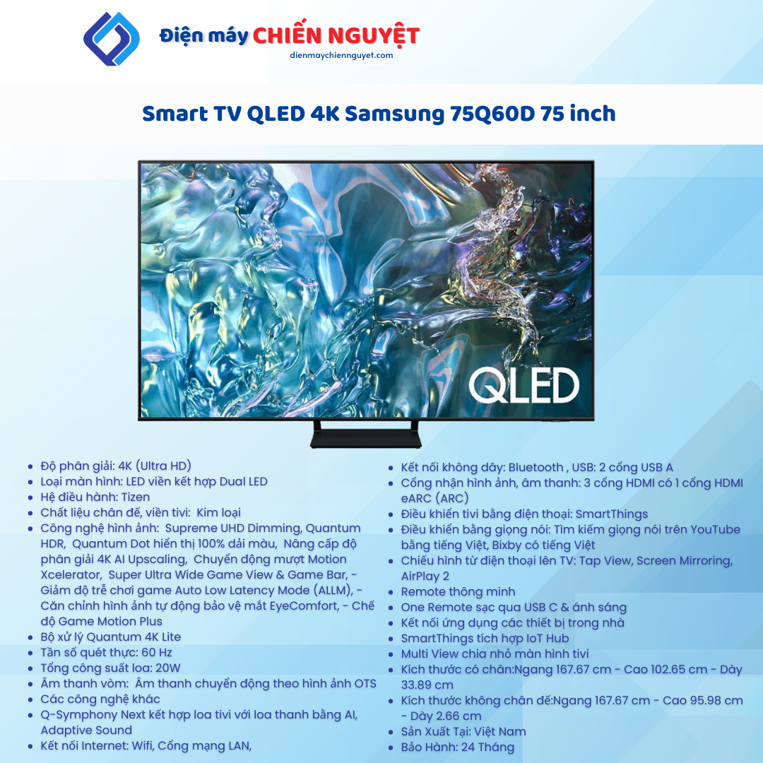 Smart Tivi QLED Samsung 4K 75 inch QA75Q60D