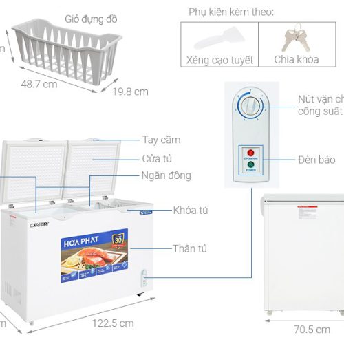Tủ đông Hòa Phát Inverter 271 Lít HPF BD8271 là mẫu tủ đông có dung tích sử dụng 271 lít phù hợp với các hộ gia đình, quán ăn hay nhà hàng đang kinh doanh với quy mô nhỏ. Chiếc tủ đông này khá tiện lợi khi vừa có thể bảo quản rau củ quả đồng thời có thể cấp đông nhanh thực phẩm tươi sống trong 2 ngăn chứa riêng biệt với thiết kế 2 nắp dỡ tiện lợi.