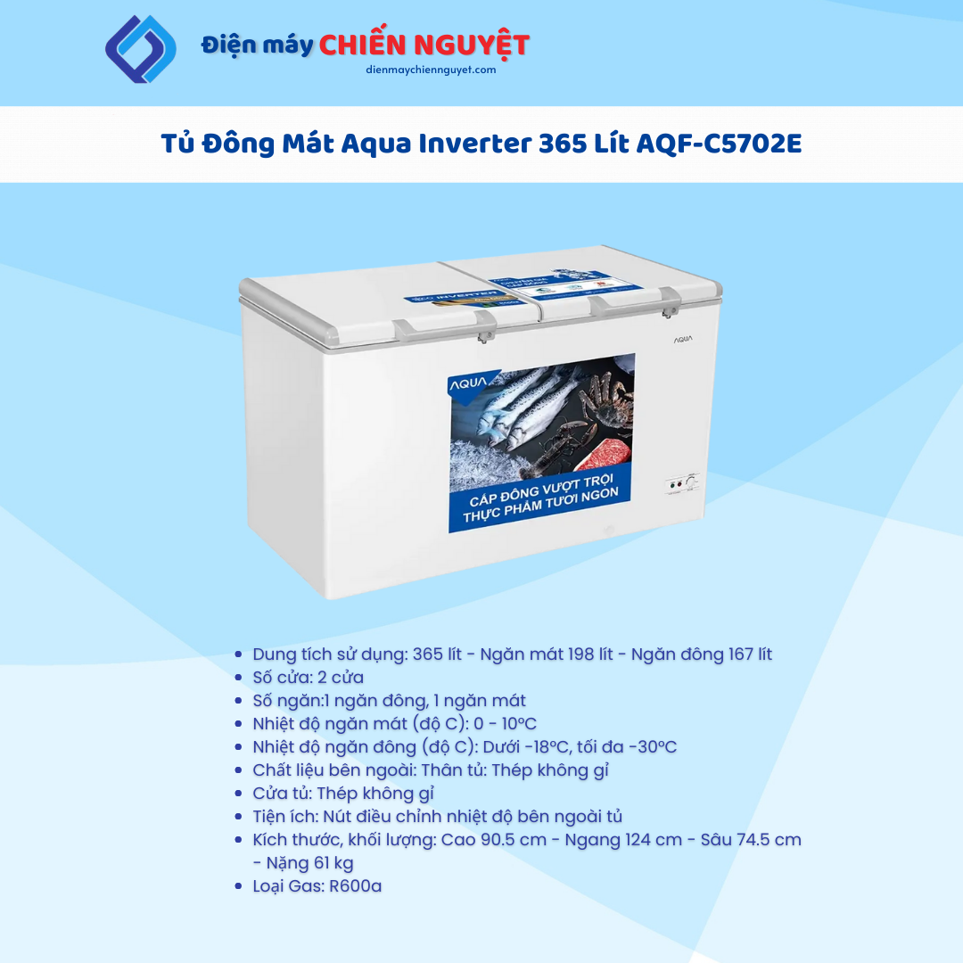 Tủ Đông Mát Aqua Inverter 365 Lít AQF-C5702E