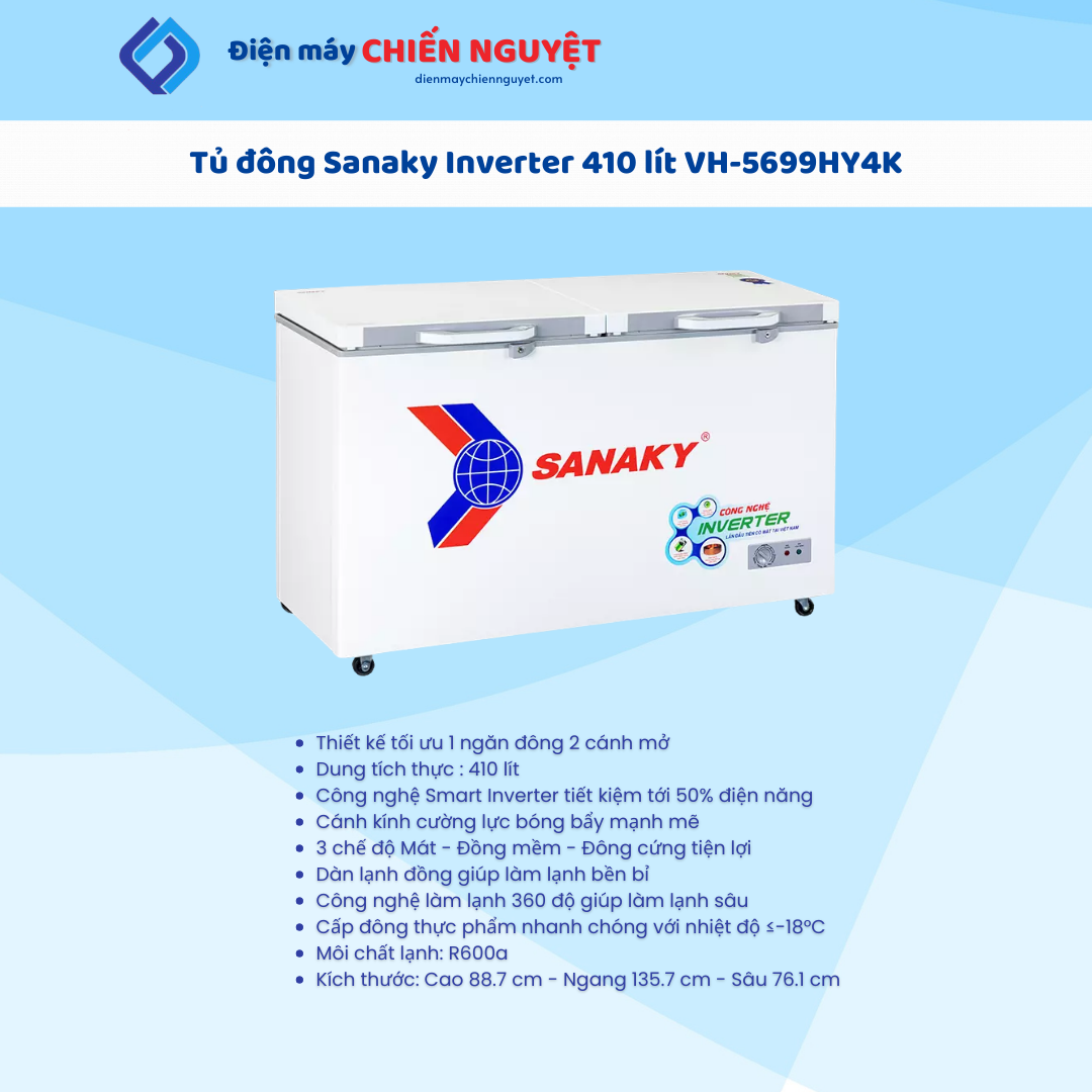 Thiết kế Tủ đông Sanaky VH-5699HY4K đông sang trọng đẳng cấp