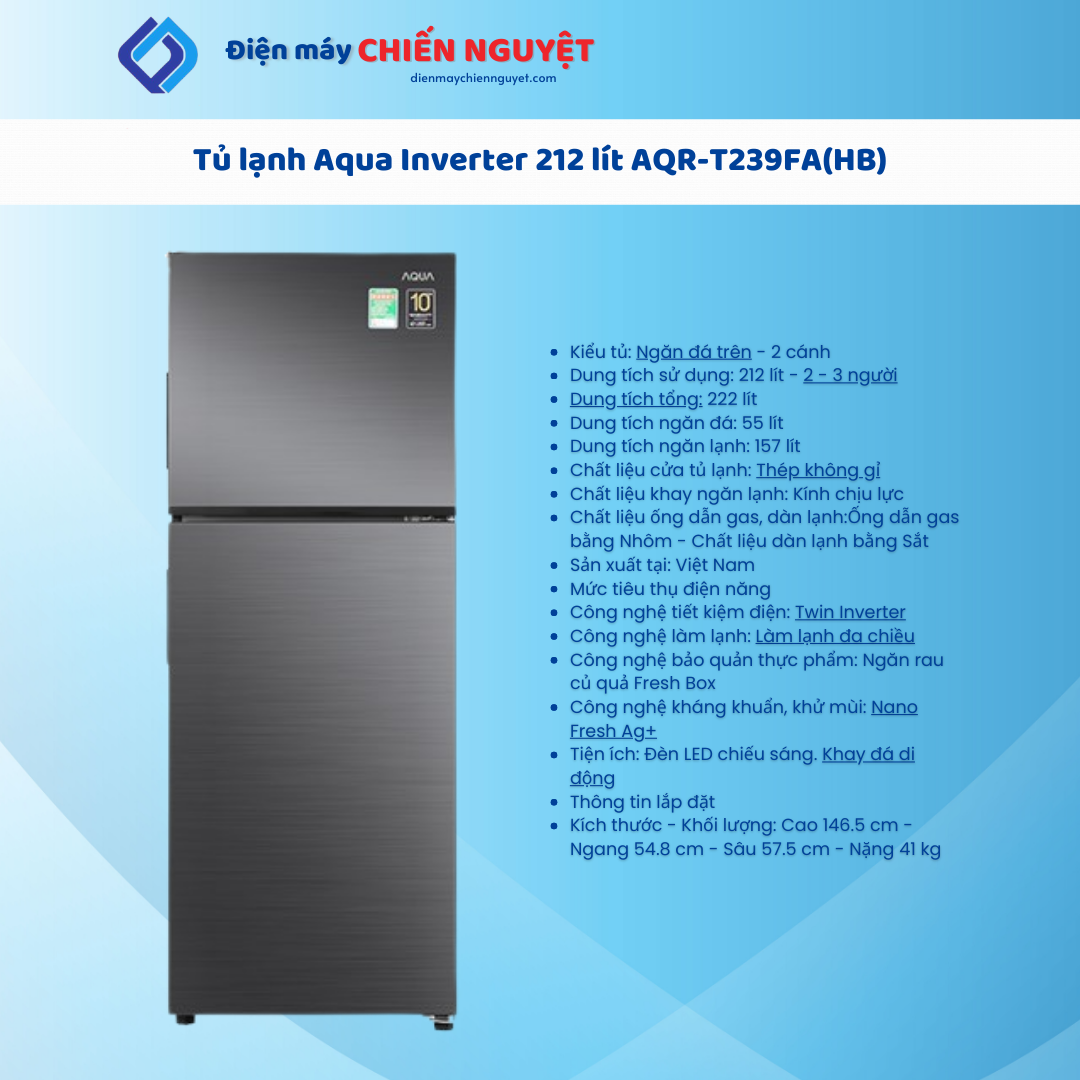 Tủ lạnh Aqua Inverter 212 lít AQR-T239FA(HB)