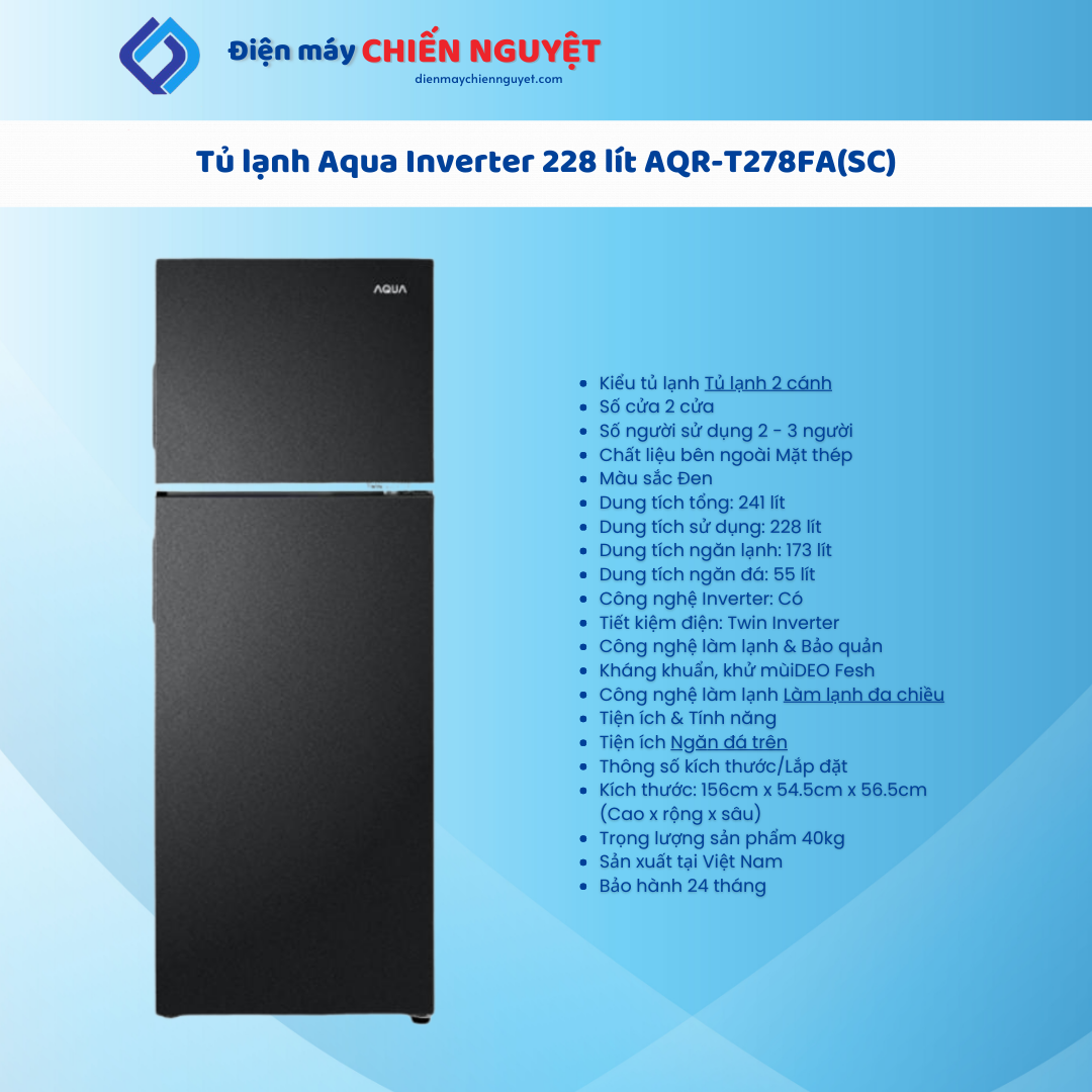 Tủ lạnh Aqua Inverter 228 lít AQR-T278FA(SC)